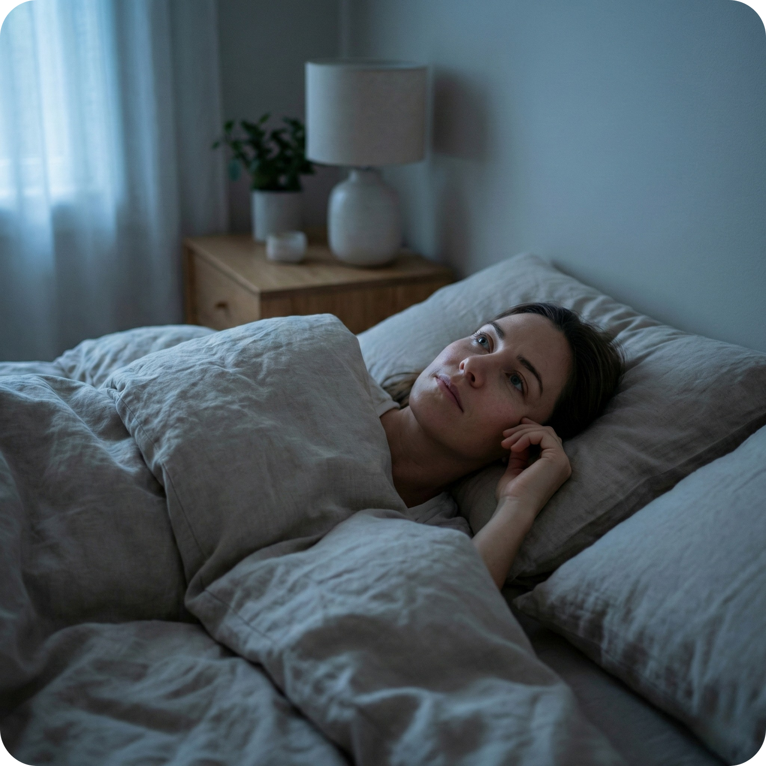 Lying awake with restless thoughts.